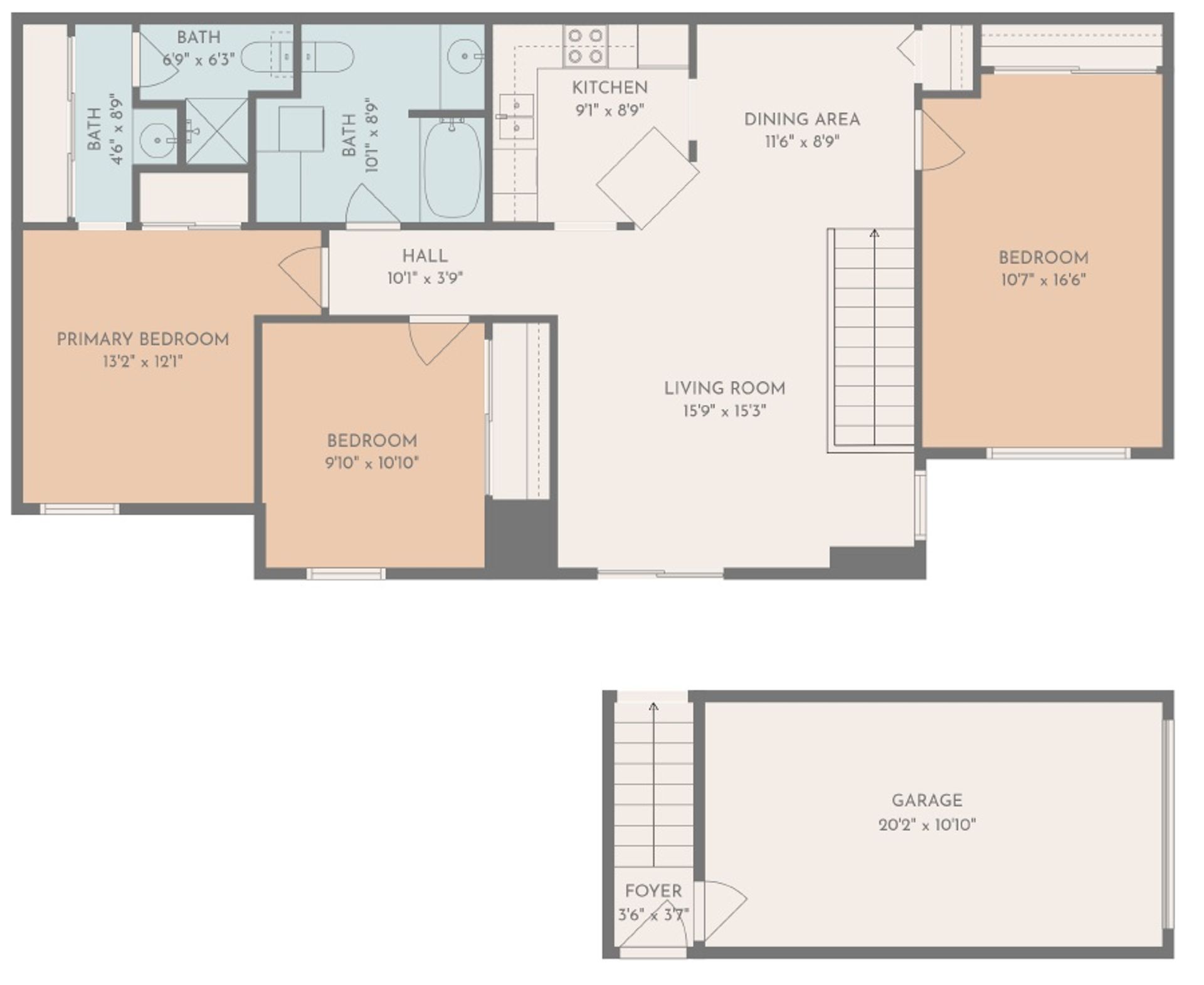 Beautiful 3 bedroom, 2 bath, townhome with private entry, private attached garage, private deck, and private in-home laundry.