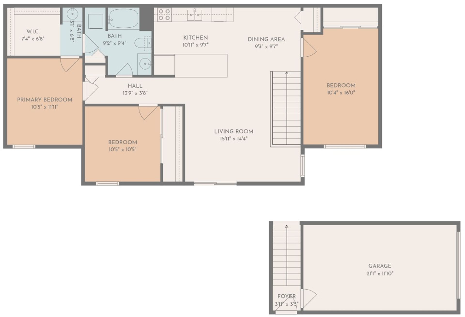 3 Bedroom Upper-level with private Laundry, private Deck, and attached private Garage